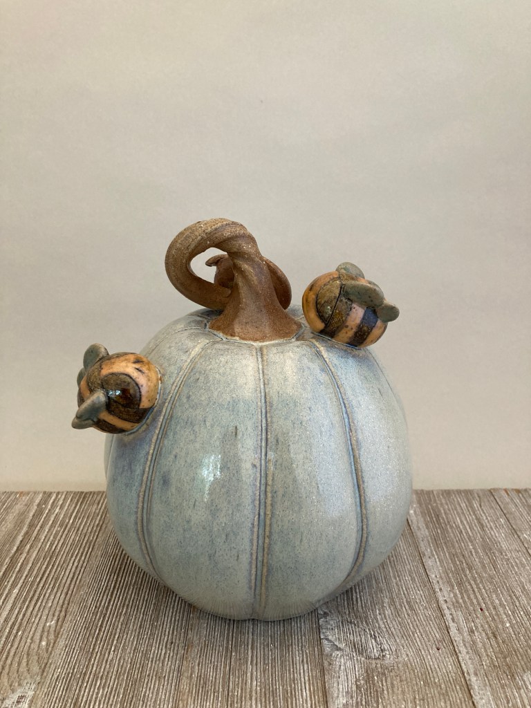Blue Hen Pottery is a partnership of Anne Pärtna and Adam Landman. Anne grew up in Estonia, where people used to not eat pumpkins very much, only as a relish type side dish with your potatoes and pork roast during Christmas. Living in America has taught her many interesting things and she has since become passionate about pumpkins and winter squashes as near perfect food – easy to grow, stores for a long time and can be roasted, made into soups, stews and curries and baked into many delicious sweet treats. What’s not to like? The shapes alone are a feast to a potter’s eye. Anne makes both sculpture and tableware and has become obsessed with bees.